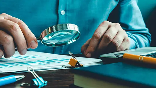 A close-up of a person working on a laptop, using a mouse with one hand while typing with the other. Financial documents with charts and graphs are spread across the desk, along with a calculator, suggesting tasks related to accounting, data analysis, or financial reporting in a professional setting.Audits—the word alone creates an uneasy feeling for many business owners, but it doesn’t have to! In fact, an audit can be an incredibly valuable tool for your business, helping you gain insight into your company’s financial health, build trust with shareholders and enable access to various sources of capital.